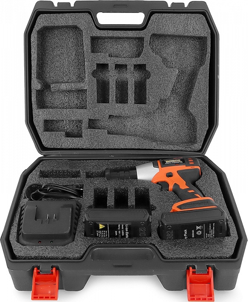 - Индикатор заряда на аккумуляторе: можно проверить его уровень, не подключая аккумулятор к заклепочнику