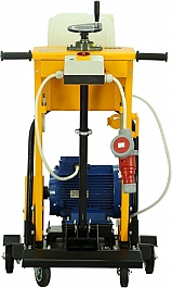 - Вращающиеся вокруг вертикальной оси задние колеса позволяют своевременно и без лишних усилий направлять в нужную сторону и вести криволинейный рез бетона, железобетона, асфальта, повторяя изгиб трещины