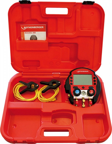Электронный цифровой манометрический коллектор Rothenberger Rocool 600, 2 температурные клеммы, чемодан